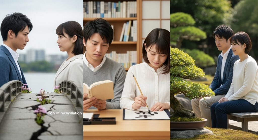 復縁を望む時、前兆を探す気持ちは分かります。連絡頻度の変化やSNSでの行動、共通の友人からの情報、あなたへの態度の変化などは確かに手がかりになるでしょう。しかし、これらは必ずしも復縁を保証するものではありません。大切なのは、冷却期間を有効活用し自分磨きに取り組むこと。そして、相手への配慮を忘れずに、誠実なコミュニケーションを心がけることです。復縁の可能性を高めるには、焦らず、自分自身と向き合いながら、相手との関係をゆっくりと再構築していくことが重要です。前兆がない場合でも、必ずしも諦める必要はありません。自分自身を成長させる良い機会と捉え、前向きに新しい一歩を踏み出しましょう。未来はあなた次第で変えることができます。